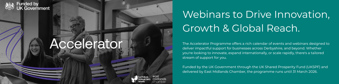 The Accelerator project is funded by the UK Government through the UK Shared Prosperity Fund. It is delivered by East Midlands Chamber. |