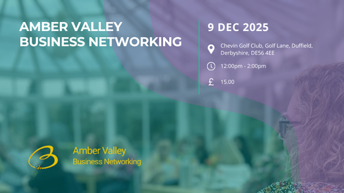 Amber Valley Business Networking - 9 Dec 2025, 12:00pm.Amber Valley Business Networking is a networking group based in the Amber Valley area of Derbyshire. Meetings are held monthly on the second Wednesday of the month at varying venues and are either a breakfast meeting or a lunch. The network meetings last for two hours and the cost is £15 per person which includes either breakfast or lunch (depending on the time of day of the meeting). For more information or to book a place visit Business Networking Belper | Breakfast Networking Belper |