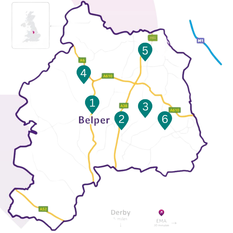 Nestled between Derby, Nottingham, and the Peak District, Amber Valley offers excellent connectivity via the A38, M1, and direct rail links, making it ideal for logistics, manufacturing, and tourism. -