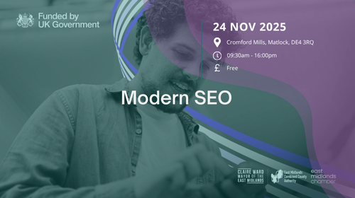 Modern SEO - 24 Nov 2025, 9:30am - 16:00pm.If you want to outrank your competitors and get more free traffic from Google, this is the workshop for you! From choosing the right target keywords to getting other websites to link to yours, you will learn all about search engine optimisation (SEO) and how to use the techniques on your own site. For more information or to book a place visit Modern SEO - East Midlands Chamber |