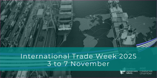 International Trade Week 2025 – 3 to 7 November5 November 2025 Businesses across Amber Valley are invited to take part in International Trade Week (ITW), running from Monday 3 November to Friday 7 November 2025. This nationwide initiative is designed to help UK businesses explore international markets, boost exports, and grow globally, with strong backing from both East Midlands Chamber and the Department for Business and Trade. For more information visit International Trade Week 2025 |